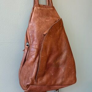 We The Free Tan Leather Soho Sling Bag Multiple zippers , storage pockets and adjustability