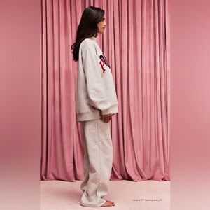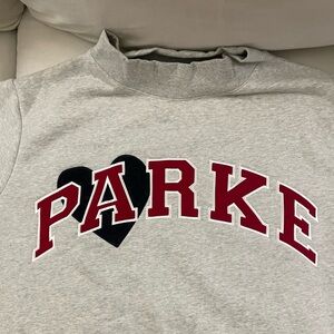 PARKE NWT Valentines Special Edition Jean Heart Varsity Fleece Mockneck Size L/XL Classic Grey Crimson