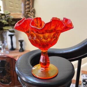 Beautiful amberina candy dish/ compote. It glows under UV light.