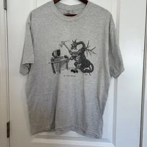 Vintage Jerzee The Computer Hacker Dragon Graphic T-Shirt XL Gray 90s Tech Humor