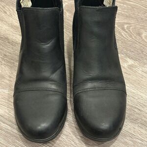Sorel Evie II Chelsea Booties combine the classic Chelsea silhouette with rugged durability for all-day comfort. These waterproof boots feature a full-grain leather and suede upper with elastic side panels for easy slip-on wear. A molded rubber outsole provides excellent traction, while the cushioned EVA midsole ensures a comfortable stride in various weather conditions. Gentle wear pictured, but overall in very good condition.
