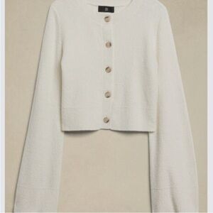 Chic cream jacket with button-up front. Soft fabric and modern design. Ideal for versatile styling.