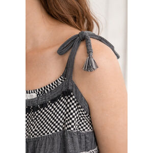Features an empire-style babydoll fit that drapes loosely and comfortably through the body, making it flattering and easy to wear. The adjustable shoulder tie straps allow for a customizable fit.