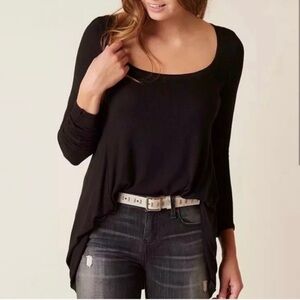 Stylish black long sleeve tee. Ideal for everyday wear. Soft and flowy fabric.