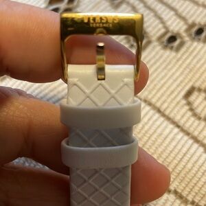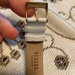 🪩Host Pick🪩Versus Versace White Textured Leather Band Goldtone Watch