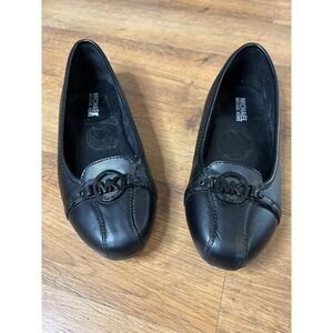 Michael Kors Fulton Moc Flats Womens 8M Black Leather Logo Medallion Excellent
