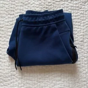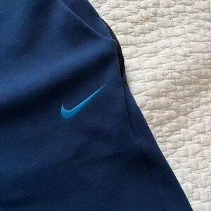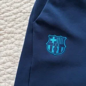 Blue Nike FC Barcelona Tech Fleece training pants. New without tags, never worn and in great condition. Pockets on both sides and the left side has an extra zipper pocket. Size small. Last image is a stock photo.