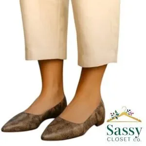 ✨ Features: Pointed toe • Faux‑snake texture • Lightweight design • Neutral edge • Slip‑on flat