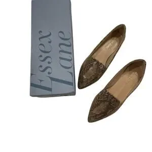 Essex Lane Snake Print Pointed Toe Flats Neutral Women’s 6 NWOT