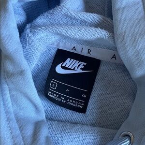 Sky blue Nike Air hoodie with drawstring hood. Features bold front logo and slight cropped style and fit, hand pockets, excellent like new pre loved condition size small