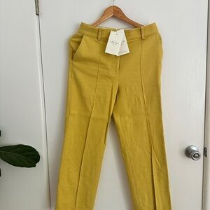 NWT Sezane Corentin Trouser in Yellow Linen (US 4)