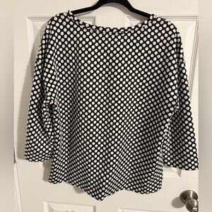 Super Soft top with black and white polka dots.