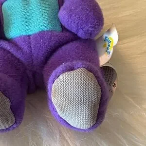 Adorable Teletubbies plush clip-on toys in vibrant red, green, and purple. Perfect for kids to attach to backpacks or strollers. Soft and cuddly, these toys bring joy on the go.