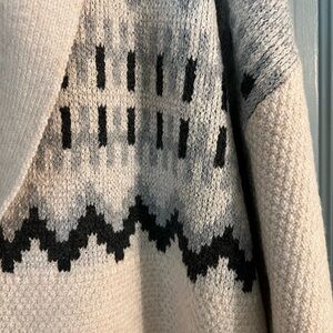 This is a new sweater that measures 28” flat across with three front buttons. Beautiful color combination makes this the sweater you’ll enjoy with many of your favorite outfits.