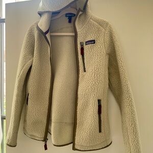Cozy fleece jacket with hood. Features zippered pockets. Ideal for warmth and comfort.