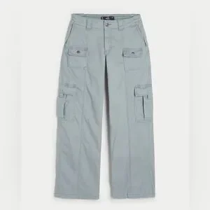 Hollister Women’s Light Gray Low-Rise Baggy Cargo Pants Sz 4R