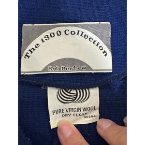 This is a pre-owned, long-sleeved, blue dress from The 1300 Collection by Holt Renfrew. It is made of pure virgin wool. The dress features a collared neckline and a button-down front with six buttons. The dress is a midi length 46”. The dress has a tag that says "PURE VIRGIN WOOL DRY CLEAN 302841" and another tag that says "Whatever your way... There's a wool". This is a vintage dress in immaculate condition.