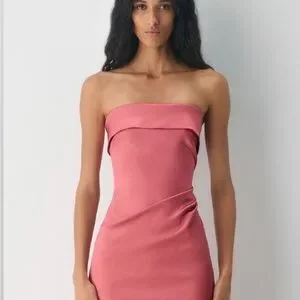 Brand new, never worn, with original tags attached. This elegant Aritzia dress features a strapless neckline with a structured fold-over detail, a flattering fitted silhouette, and a sleek midi length with a subtle side slit for ease of movement. The color is a beautiful Petunia Pink / Rose Petunia, perfect for weddings, parties, date nights, or special events. Crafted in a smooth, high-quality fabric that hugs the body beautifully while remaining comfortable.