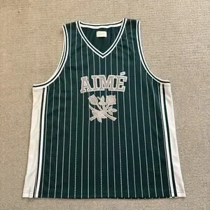 Aime Leon Dore Shirt Jersey Mens Sz XL Green White ALD Knit Tank Top Basketball