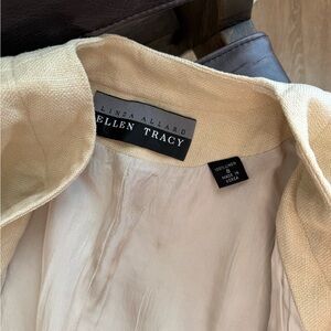 A timeless vintage blazer crafted from 100% linen in a soft butter yellow tone that feels fresh, elegant, and incredibly wearable. Designed by Linda Allard for Ellen Tracy, known for refined tailoring and luxury-quality fabrics.