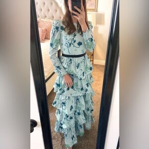 Tuckernuck Indigo Blue Botanical Tory Tiered Dress XXXL