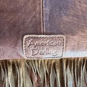Brown and White Fringe Leather Bag