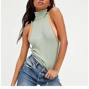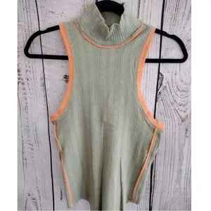 We The Free by Free People NWT Marley Ribbed Mock-Neck Tank Top Green Orange S