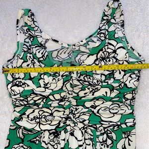 Bisou Bisou Floral Green and White Sleeveless Midi Dress