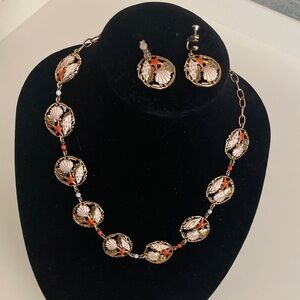 Beachy beach Gold tone Seashell Necklace and earrings set