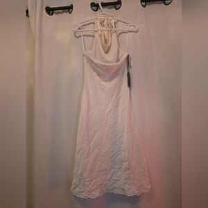 This is a lined sleeveless midi dress with a cowl neckline, a bias cut and self-tie straps. It's crafted from drapey, lustrous satin that's extremely soft to the touch. This fabric is made with Naia™ Renew — wood-based fibres from responsibly managed forests with a focus on protecting ecosystems and providing social benefits for local communities.