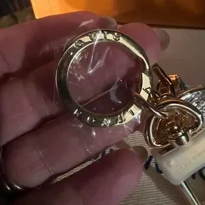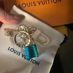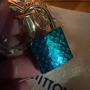 Chic Louis Vuitton bag charms, still has blue tape on lock with gold accents. Perfect for keys or bags.