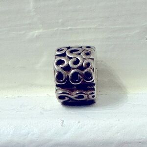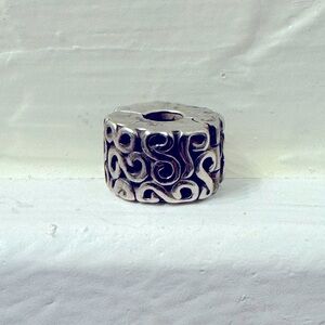 Pandora's clips are an easy way for you to divide your bracelet into thirds. They're useful in bracketing whatever pattern of beads you choose. This sterling silver clip has an all-over, swirled "S" pattern.