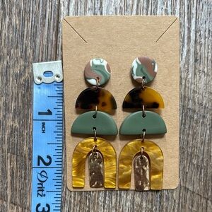 Stylish geometric earrings. Features multicolor design. Perfect for any occasion.