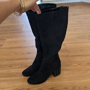 Black Suede Knee-High Boots