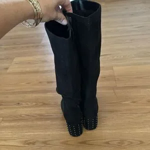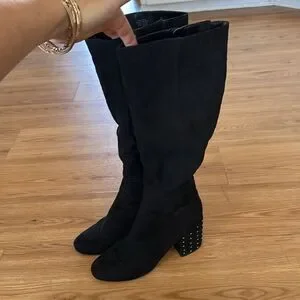 Step out in style with these elegant black suede knee-high boots. Perfect for any occasion, they offer both comfort and sophistication.