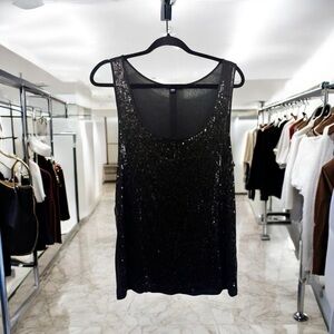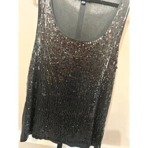☀️Gap Womens Sequin Top Blouse Sleeve Scoop Neck Stretch Retro Party Black L