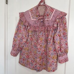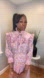 Boho pink floral print ruffled blouse and matching multi media tiered maxi skirt set