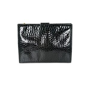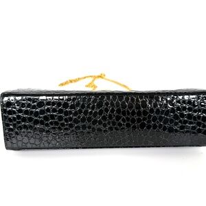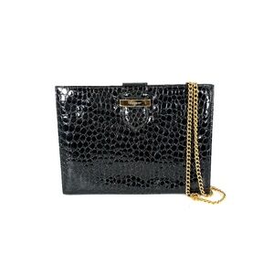 Vintage Salvatore Ferragamo Dark Green Croc Embossed Crossbody Clutch Chain Bag