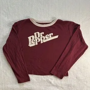 Show off your style with this Dr Pepper long sleeve tee in a rich maroon color. Perfect for casual outings.