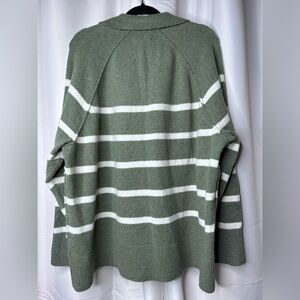 Soft, cozy, and effortlessly cute — this Aerie sage and white striped V-neck sweater is perfect for layering and everyday comfort. Lightweight knit fabric with a relaxed fit makes it great for lounging, running errands, or casual outfits.