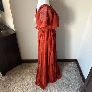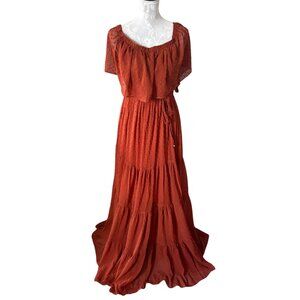 Baltic Born Swiss Dot Off The Shoulder Tiered Maxi Dress LARGE NWT