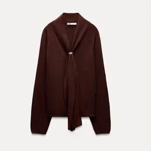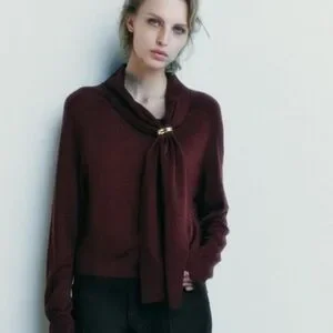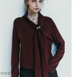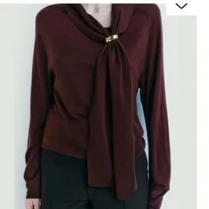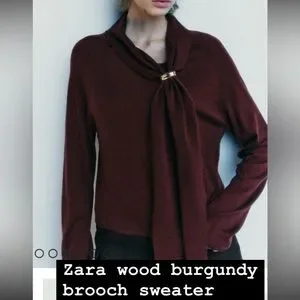 NWT ZARA burgundy WOOL BLEND BROOCH SWEATER SiZE M 🚨PRICE FIRM NO DISCOUNT
