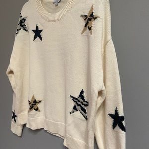 Stylish cream sweater with star patterns. Perfect for casual wear.