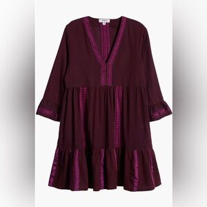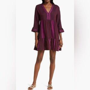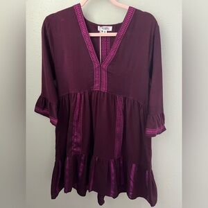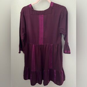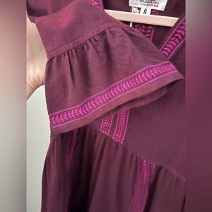 This hand-spun cotton-blend dress woven by artisans makes a pertect poolside cover-up with bell sleeves and a flowy skirt. Has an iridescent color that’s difficult to pick up in photos. It’s a magenta but purple color.