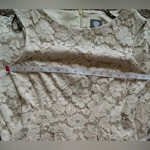 Chic cream lace mini dress. Sleeveless design. Perfect for elegant outings. Beautiful dress new condition.
