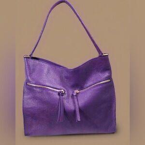 TOTE LE MONDE The Geneva Purple Pebbled Leather Shoulder Elegant Tote Bag.