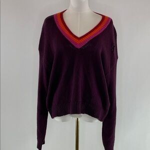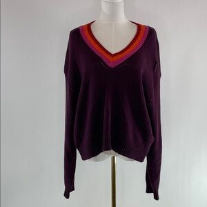 Purple (55% RWS Extrafine Merino Wool, 45% Cotton). Knits. V-Neck. Long Sleeve. Pull On. Shoulder to Hemline Length: 21". Imported.