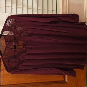 Burgundy Lace Detail Top Soft Knit Scrunch Sleeve Size L EUC