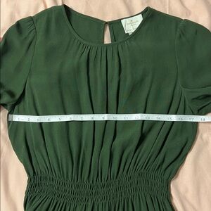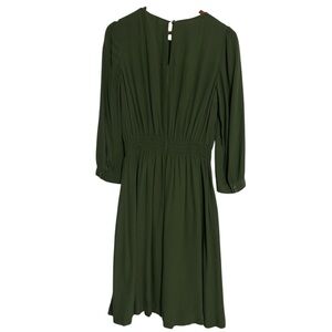 Elegant and timeless, this Kate Spade New York dress in deep forest green is perfect for work, brunch, or special occasions. Features a flattering smocked elastic waist, 3/4 button detail sleeves, and lightweight drapey viscose fabric for a flowy, feminine fit.
