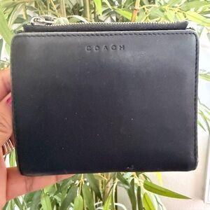 Elegant leather wallet by Coach. Features a sleek design with a zip closure.